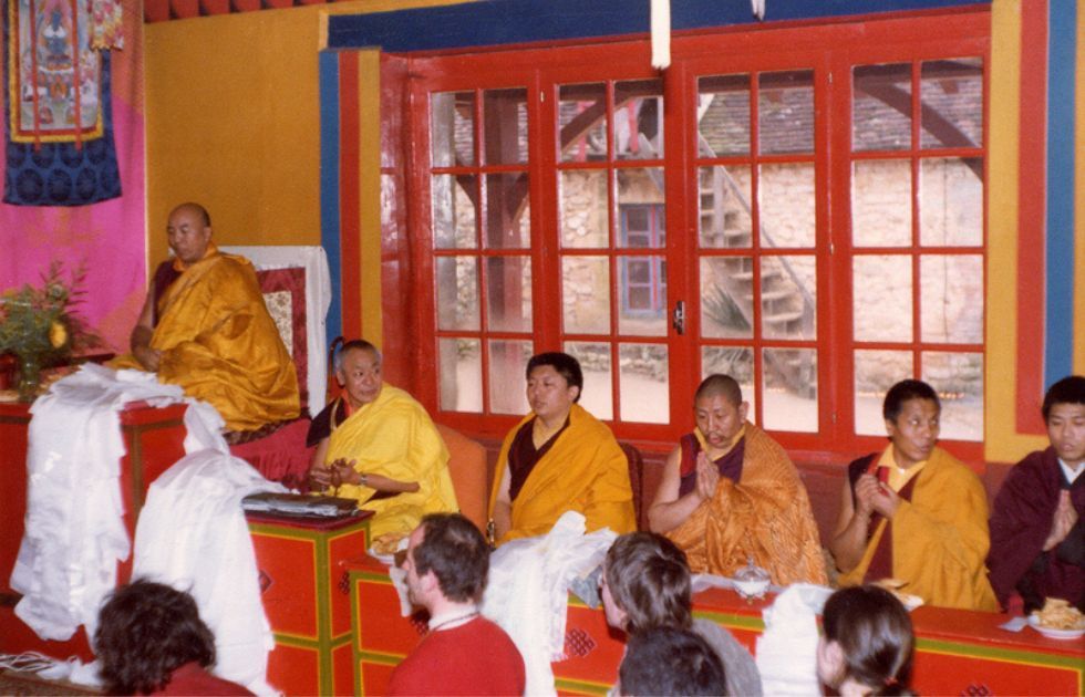 Mit diesen Worten fasst Lama Jigme Rinpoche die wenigen Minuten zusammen, die sein Leben für immer verändert haben. Nach einem dreimonatigen Aufenthalt in England, wo er auf sein Visum gewartet hatte, kam Lama Jigme Rinpoche am 3. Mai 1975 in Dhagpo Kagyu Ling an. Er war 26 Jahre alt, sprach kaum Englisch und hatte keine Ahnung, wie lange er bleiben würde …