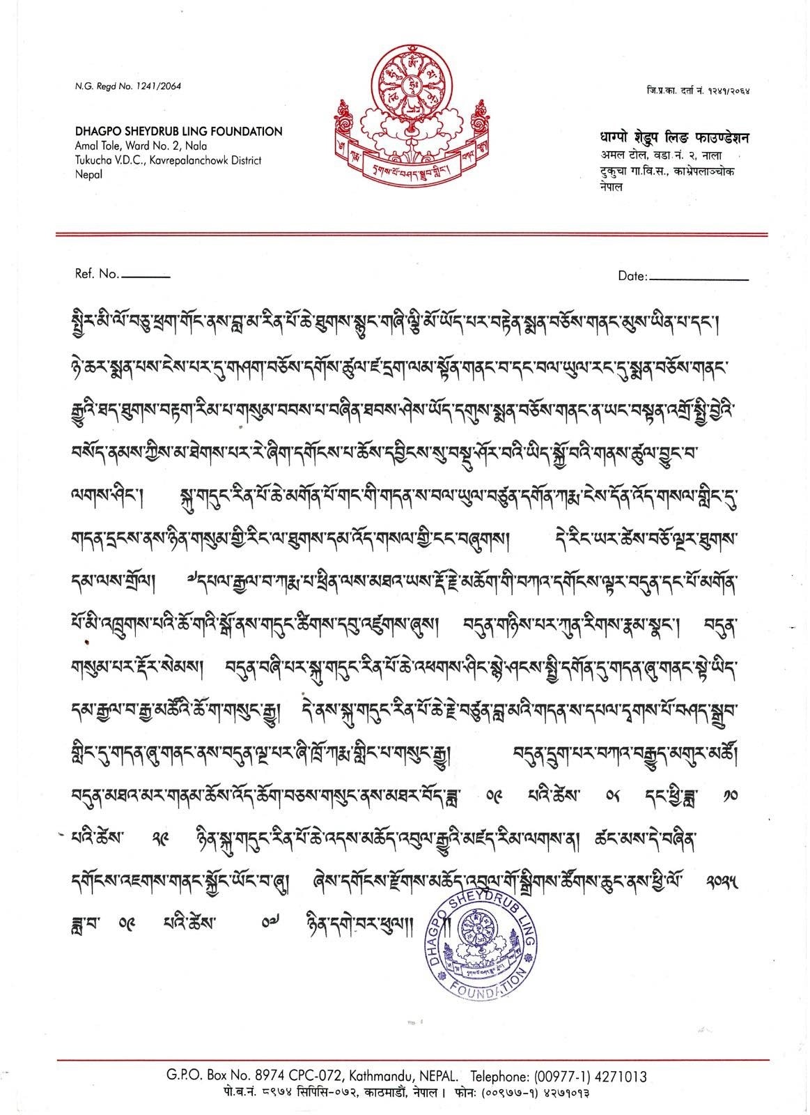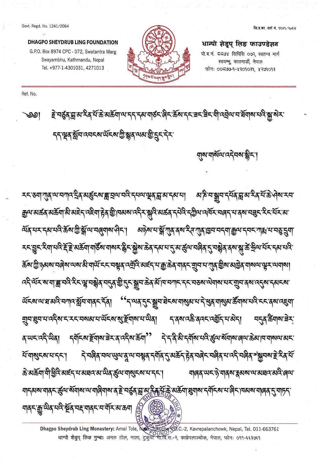 Bekanntgabe der letzten Zeremonien – Dhagpo Sheydrub Ling Foundation