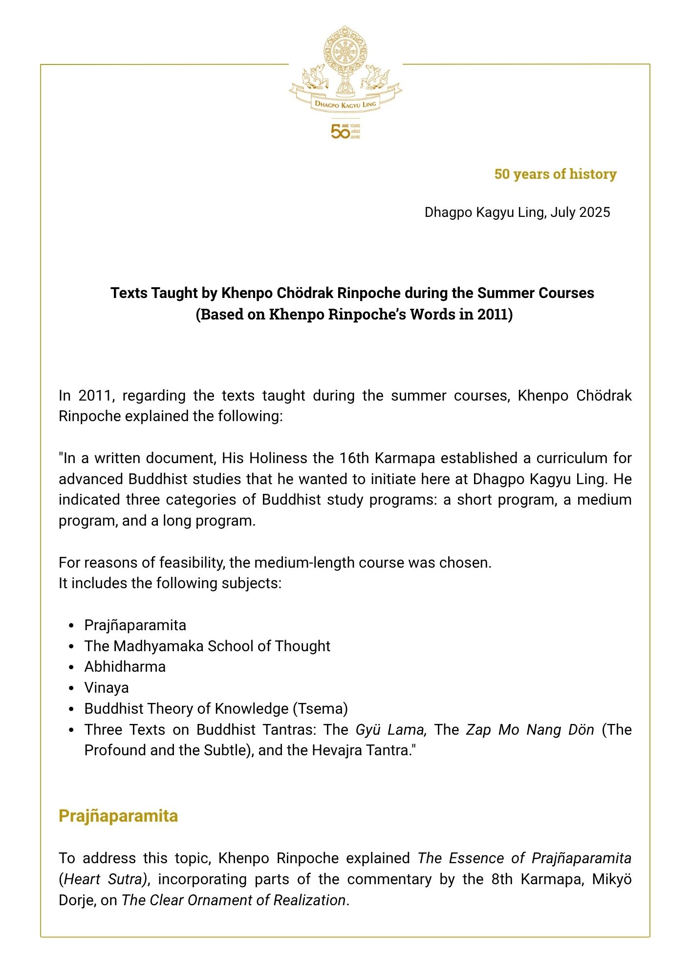 The launch of Dhagpo Kagyu Ling’s summer university in 1994 thus marks a decisive step in giving Europeans access to the essential foundations of Buddhist philosophy; treasures of knowledge, such as those taught by the Buddha and the highly realized masters who followed him.