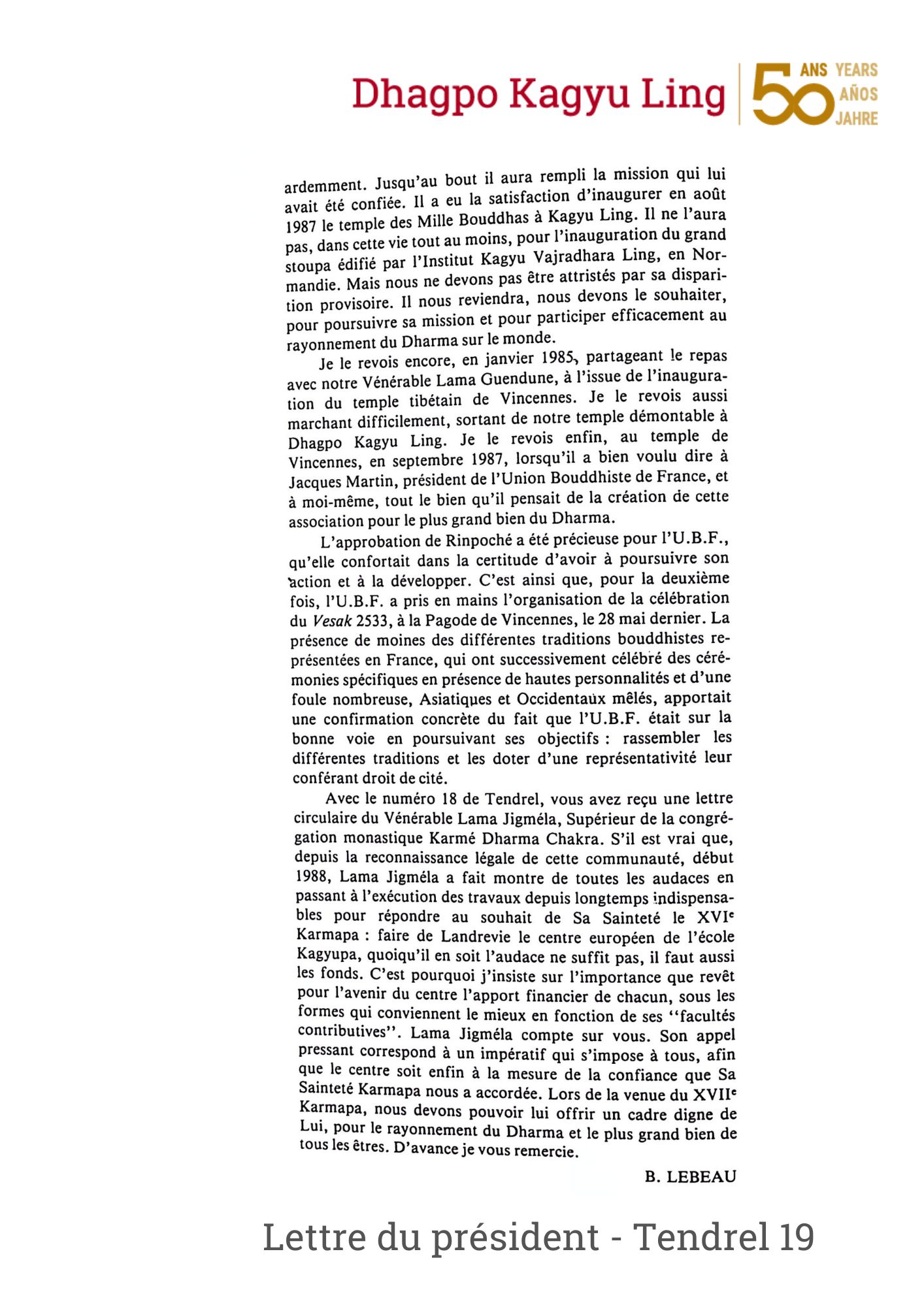 Rimpoché está íntimamente ligado a la actividad en la Côte de Jor. Sus múltiples visitas fueron reflejadas en artículos de prensa regional, mostrando el alcance de su actividad. En febrero de 1978, dirigió la puja de Chakrasamvara (tib. Korlo Demchok, “Rueda de la Felicidad Suprema”) en el templo histórico de Dhagpo, puja que también realizó el XVI Karmapa a finales de octubre de 1977 para consagrar el lugar y que este se convirtiera en parte del reino puro de este yidam.
