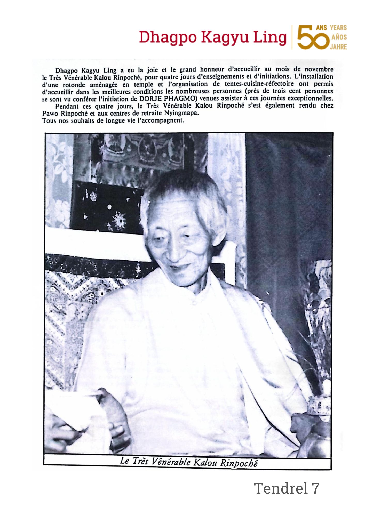Estas fotos provienen de nuestros archivos o han sido recopiladas en el marco de la búsqueda para los 50 años de Dhagpo Kagyu Ling. No hemos podido identificar a todos los autores. El uso de las fotos es únicamente informativo y en el contexto de la celebración de los 50 años de Dhagpo Kagyu Ling. Su uso está limitado a esta actividad y a nuestro sitio web, y no tiene fines comerciales.