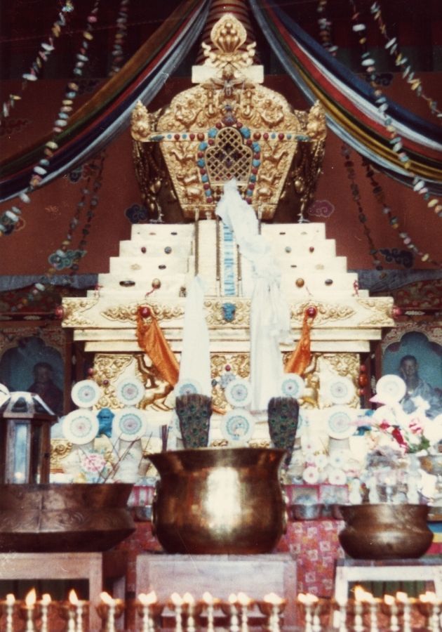 «Una vez recibida en el monasterio de Rumtek la noticia del fallecimiento del XVI Karmapa, comenzamos inmediatamente los preparativos, que incluían la recepción y preservación de la reliquia corporal de Su Santidad Karmapa.
