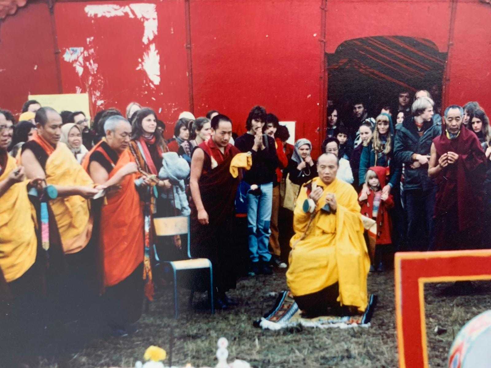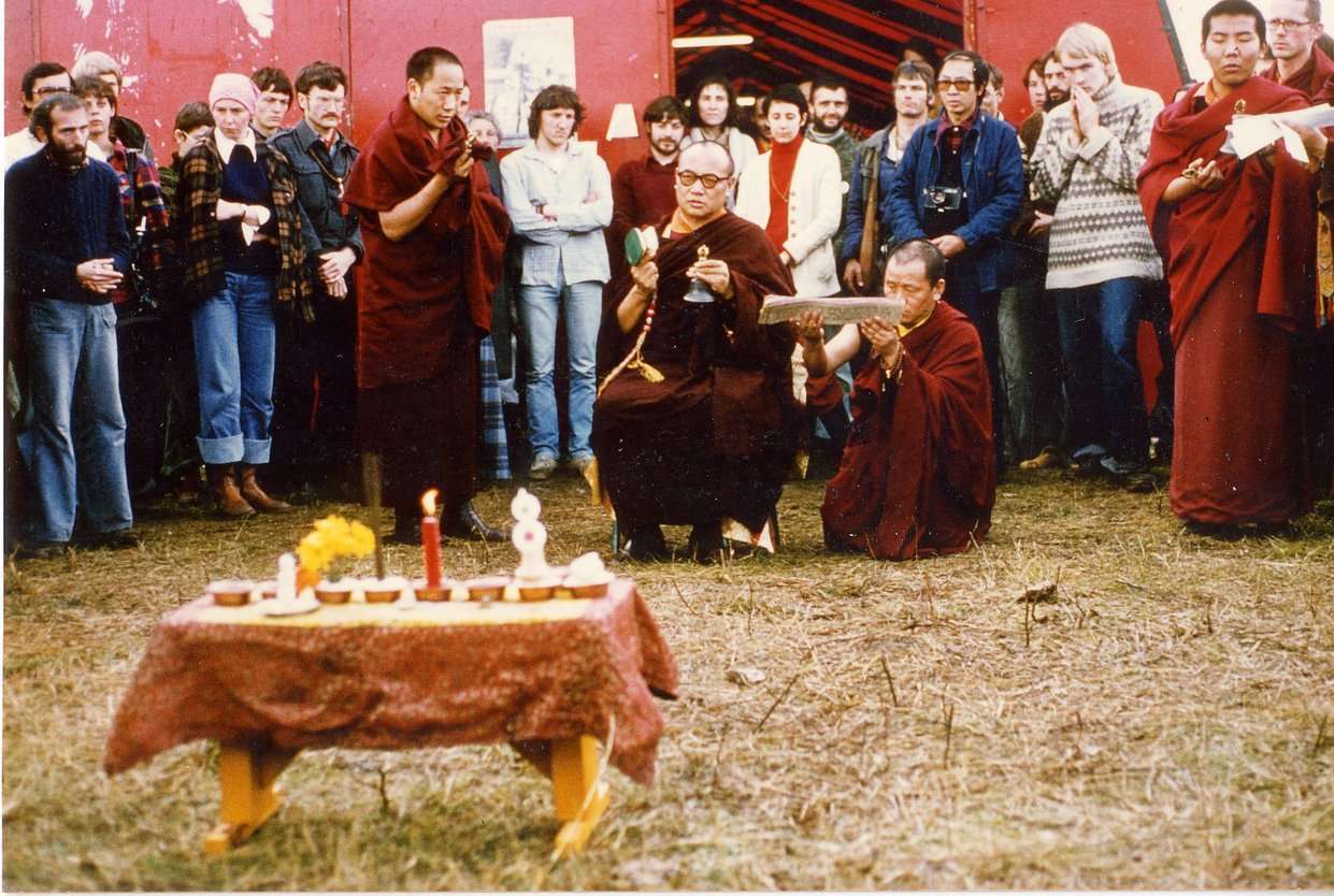 En 1977-1978, Rangjung Rikpe Dorje, Su Santidad el XVI Gyalwa Karmapa, viaja por segunda vez a Europa. Regresa a la mayoría de los países que ya había visitado en su primer viaje a Occidente en 1974-1975, y añade tres países nuevos a su recorrido (Bélgica, Grecia y Austria). Este segundo viaje a Europa fue estructurado para culminar con la consagración, en Dordoña, del terreno ofrecido por la familia Benson en 1975.