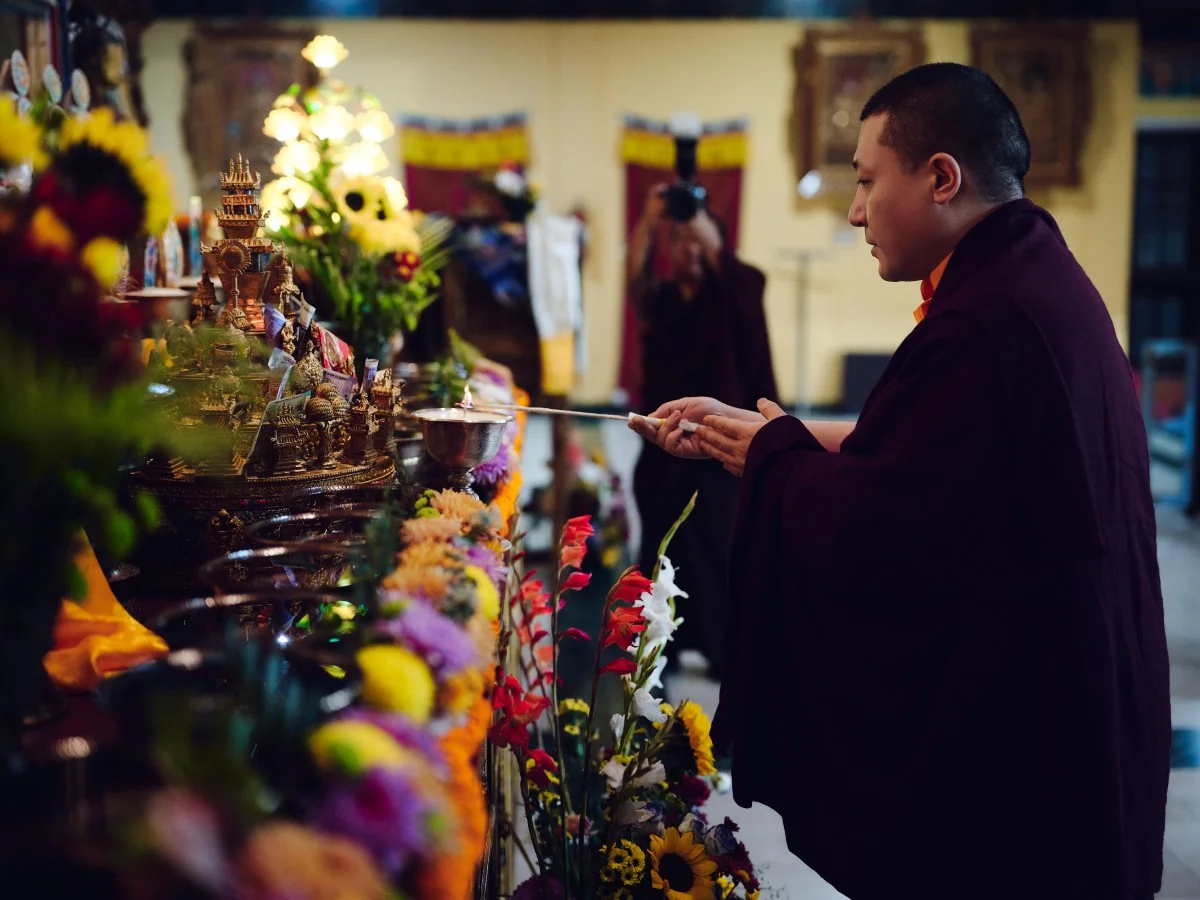 Thayé Dorjé, Sa Sainteté le XVIIᵉ Gyalwa Karmapa, a mené des discussions du Dharma, notamment sur la signification des pratiques de sojong (confession et purification) et de Chenrezik, l’aspect de sagesse qui est l’expression de la compassion éveillée de tous les Bouddhas. Il a également consacré beaucoup de temps à répondre aux questions des étudiants et a guidé des sessions de la pratique de Chenrezik.